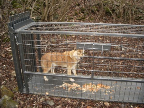 들개, 유기견 외 중·소동물등을 먹이를 통해 유인 및 생포하는 트랩입니다.